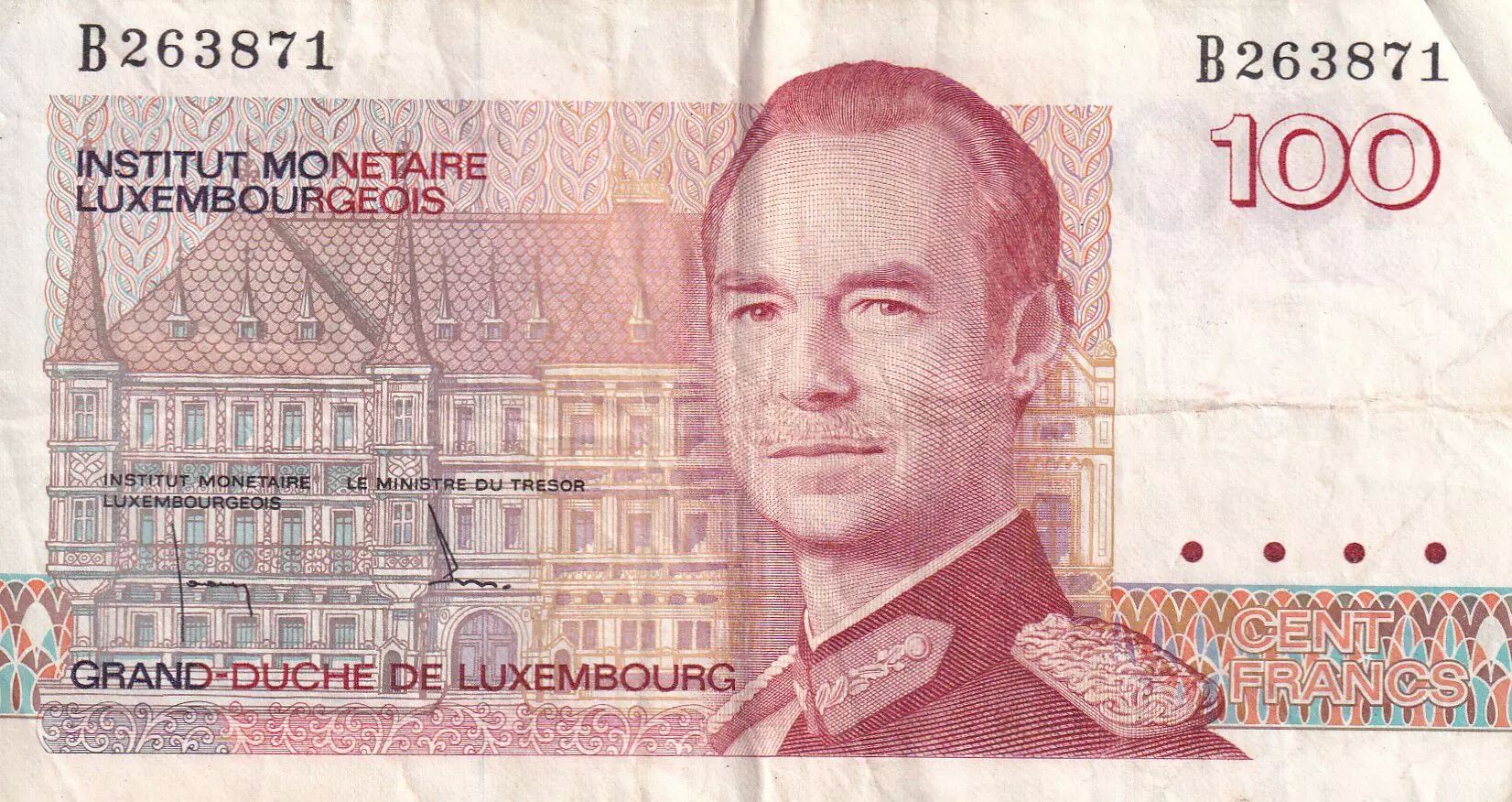 Home > > Luxembourg 100 Francs - Grand Duc Jean - 1986 - Serial B - P.58a