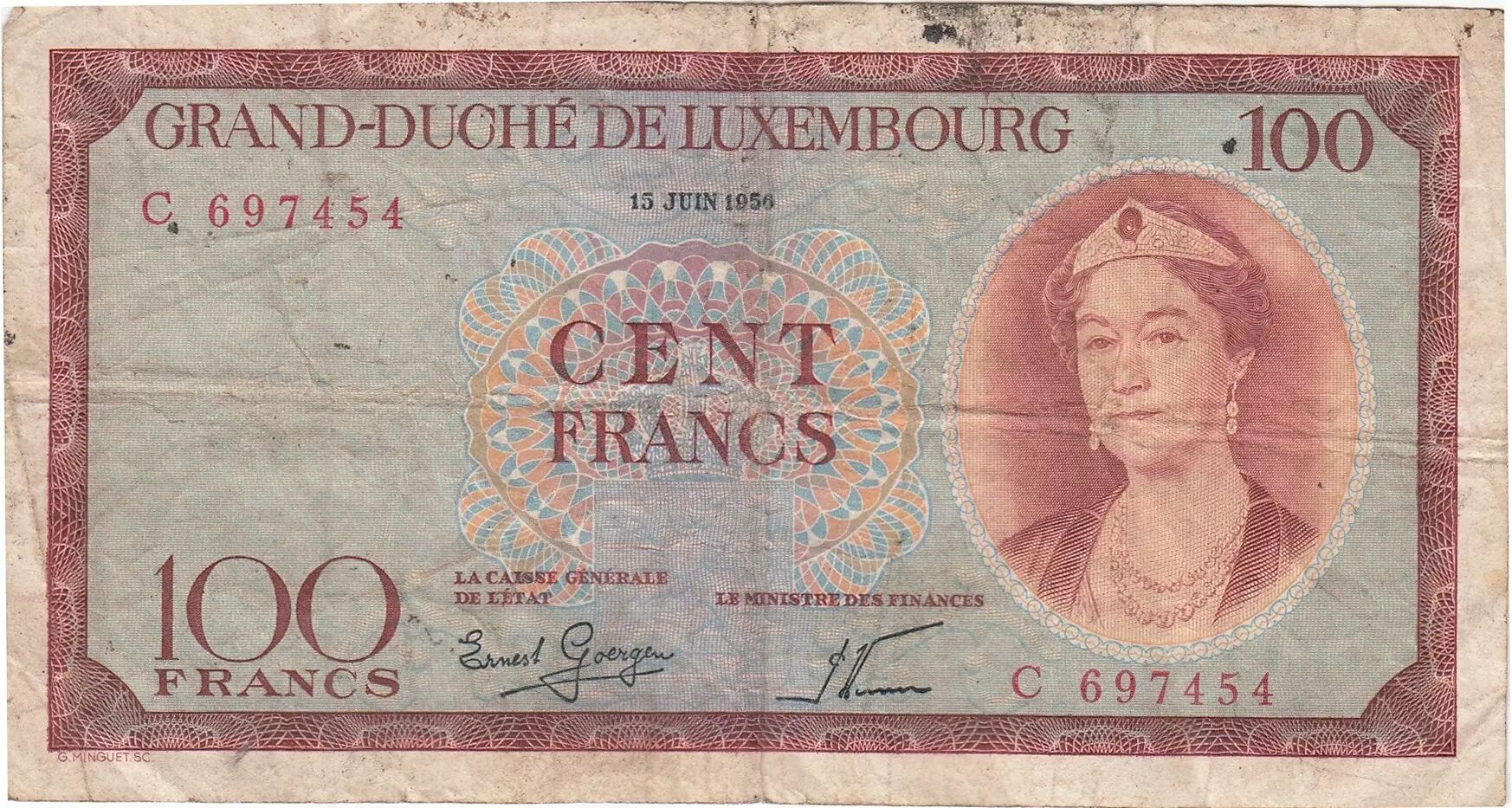 Home > > Luxembourg 100 Francs - Grand Duchess Charlotte - 1956 - Letter C