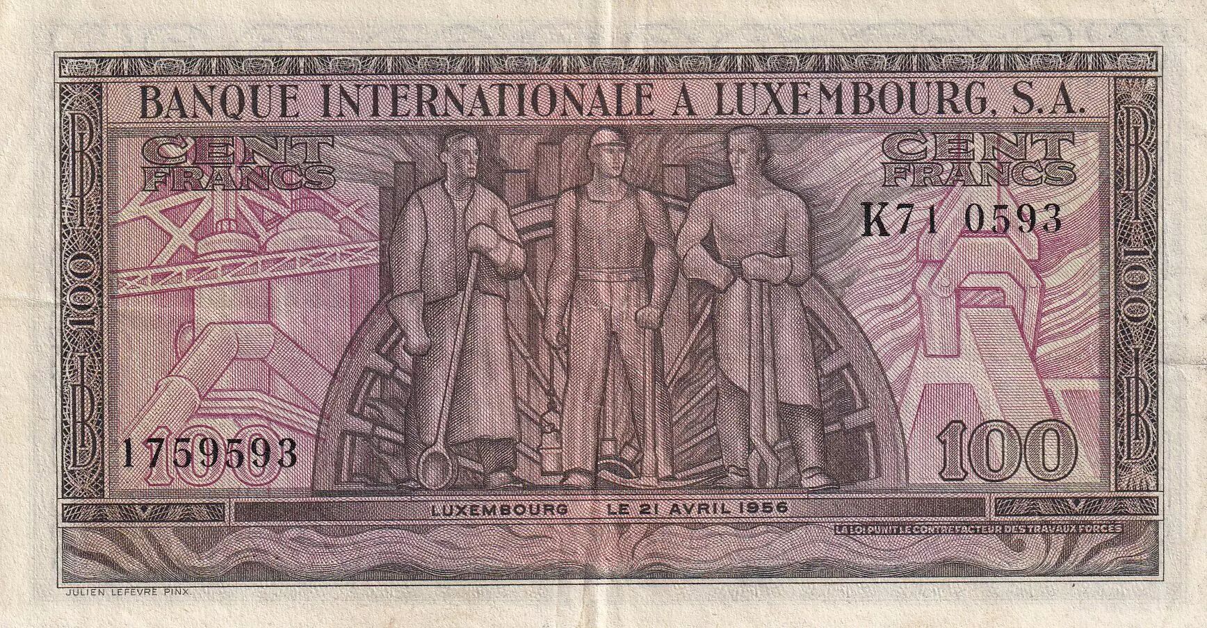 Home > > Luxembourg 100 Francs - Grand Duchess Charlotte - 1956 - Letter K - P.13