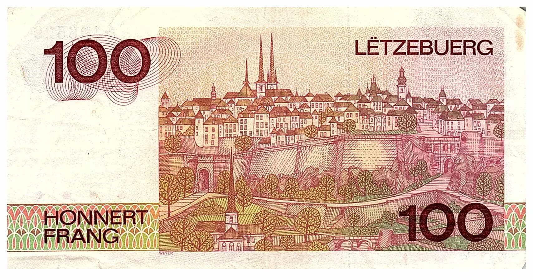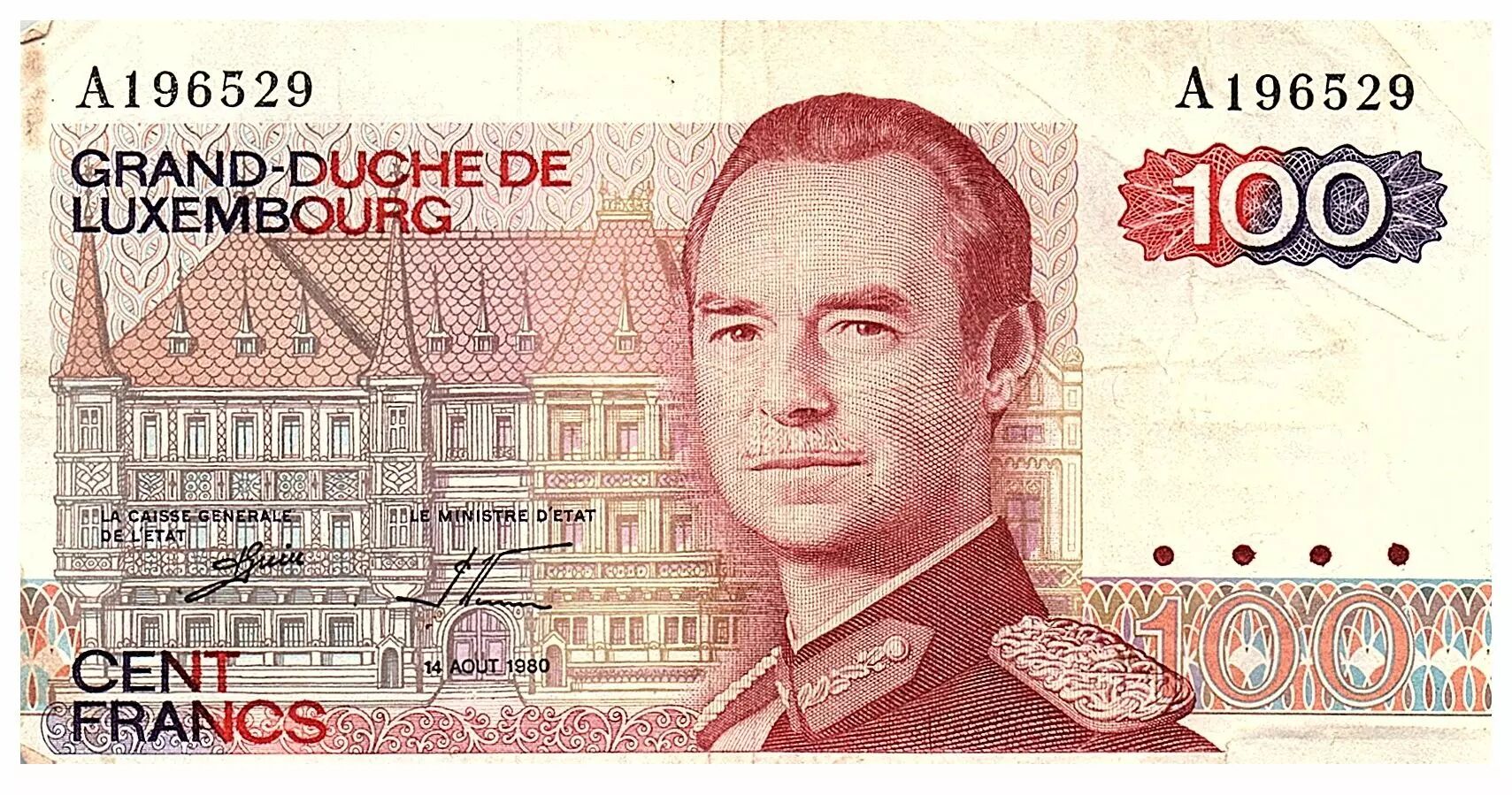Home > > Luxembourg 100 Francs Grand Duke Jean - Luxemburg - 14-08-1980 - Serial A196529 - P.57