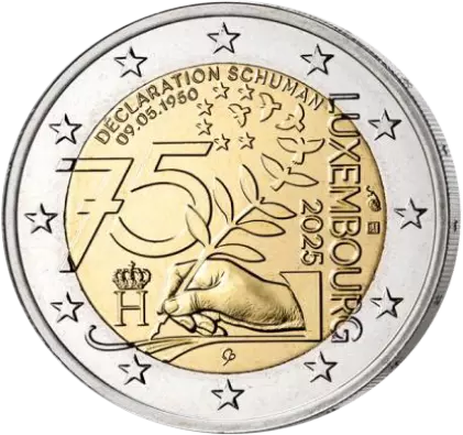 ?Europe will not be made all at once, or according to a single plan. It will be built through concrete achievements which first create a de facto solidarity.? This declaration by Robert Schuman on 9 May 1950, marks a major step towards the construction of a united Europe. Through the creation of the first supranational institution, the European Coal and Steel Community (ECSC), Europe embarked on an unprecedented process of peace and cooperation. This ?2 commemorative coin celebrates the 75th anniversary of the Schuman Declaration.