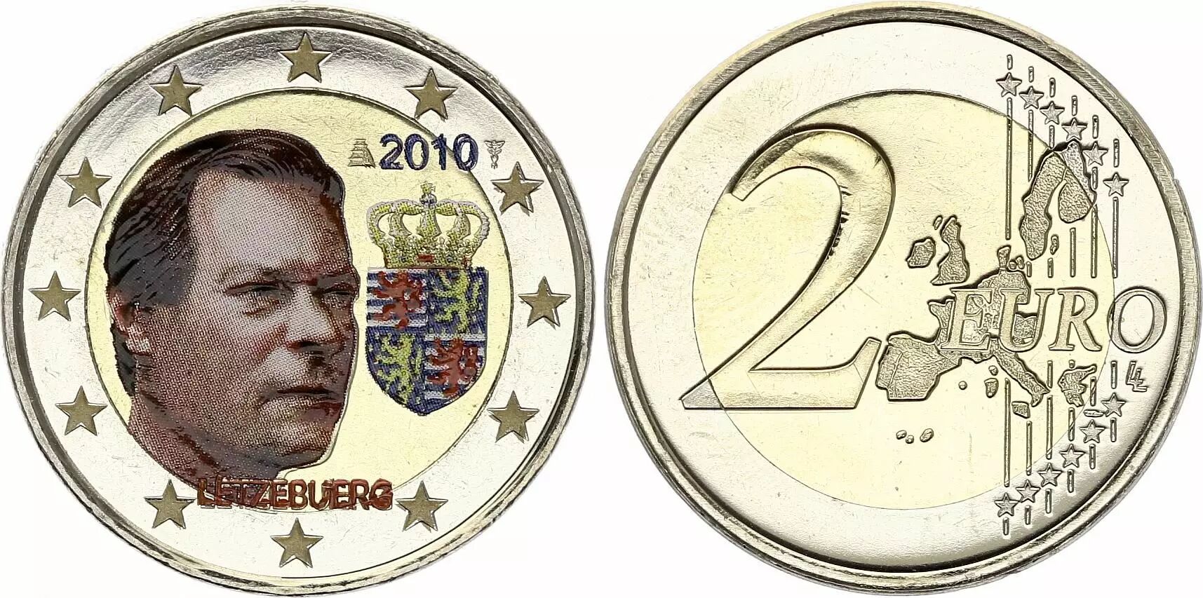 Coin Luxembourg 2 Euros - Arms of Grand-Duc Henri - Colorised - 2010