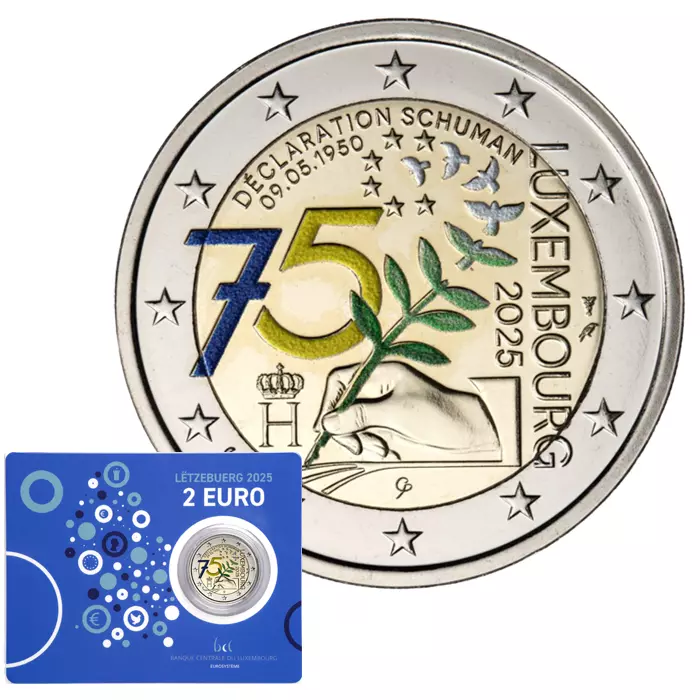 "Europe will not be made all at once, or according to a single plan. It will be built through concrete achievements which first create a de facto solidarity." This declaration by Robert Schuman, dating from May 9, 1950, marks a major step towards the construction of a united Europe. Through the creation of the first supranational institution, the European Coal and Steel Community (ECSC), Europe embarked on an unprecedented process of peace and cooperation. This 2 euro commemorative coin celebrates the 75th anniversary of the Schuman Declaration.