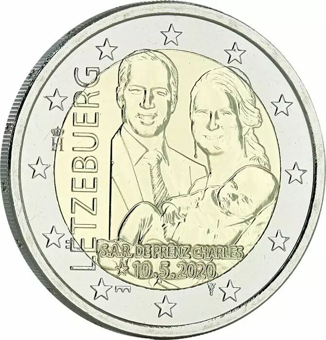 2 euros commemorative BU Coincard Luxembourg 2020 Birth of Prince Charles" Version Classique" (Classic version)