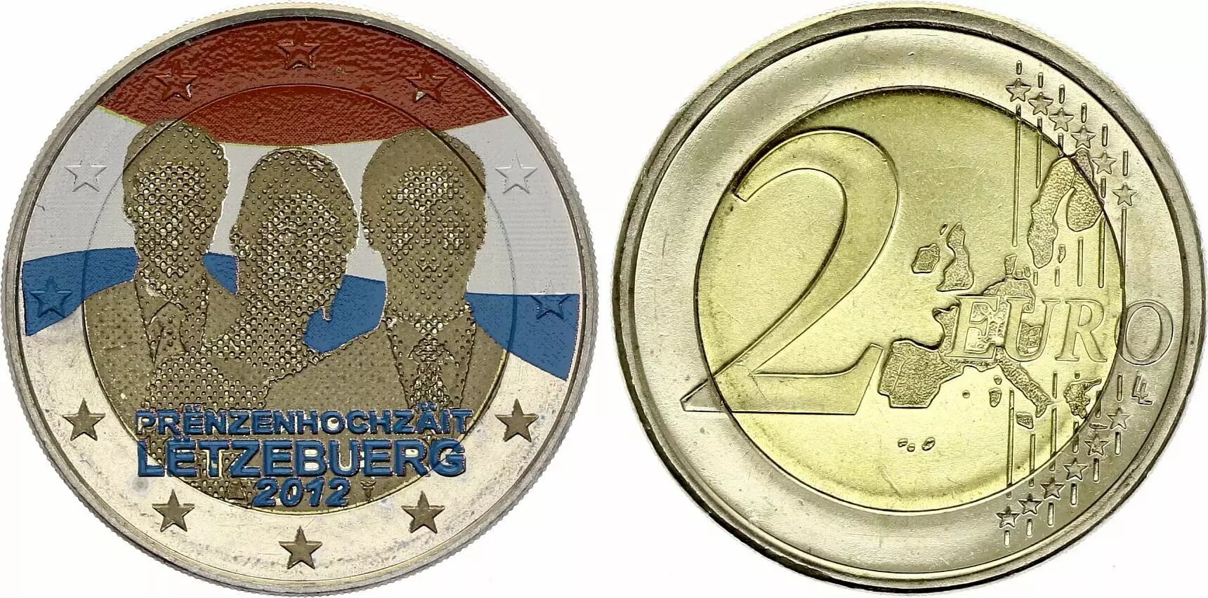 Pièce Luxembourg 2 Euros - Mariage princier - Colorisée - 2012