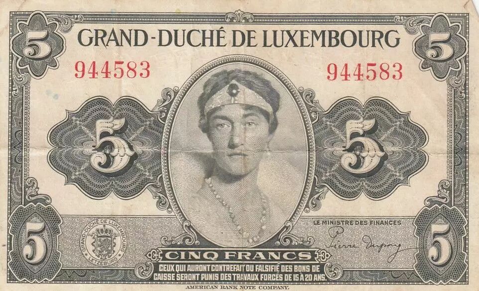 Accueil > Archivage > Luxembourg 5 Francs Grande Duchesse Charlotte - 1944 - Numéro 944583