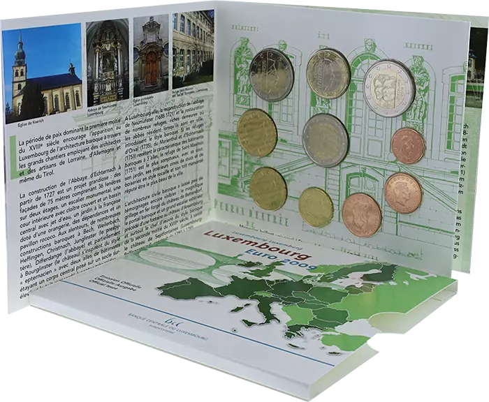 Contient 8 pièces de la 1 cent à la 2 euros + 2 euros commémorative 2009 "Grande Duchesse Charlotte" + 2 euros commémorative 2009 "10 ans EMU".