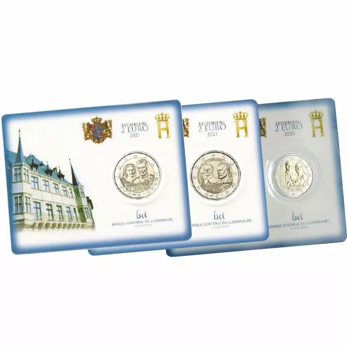 Accueil > Archivage > archivage-Archivage > Luxembourg Lot des 3 x 2 Euros COINCARD Luxembourg - 40 ans de mariage du Grand-Duc Henri + 100 ans du Pince Jean + 40 ans de ma