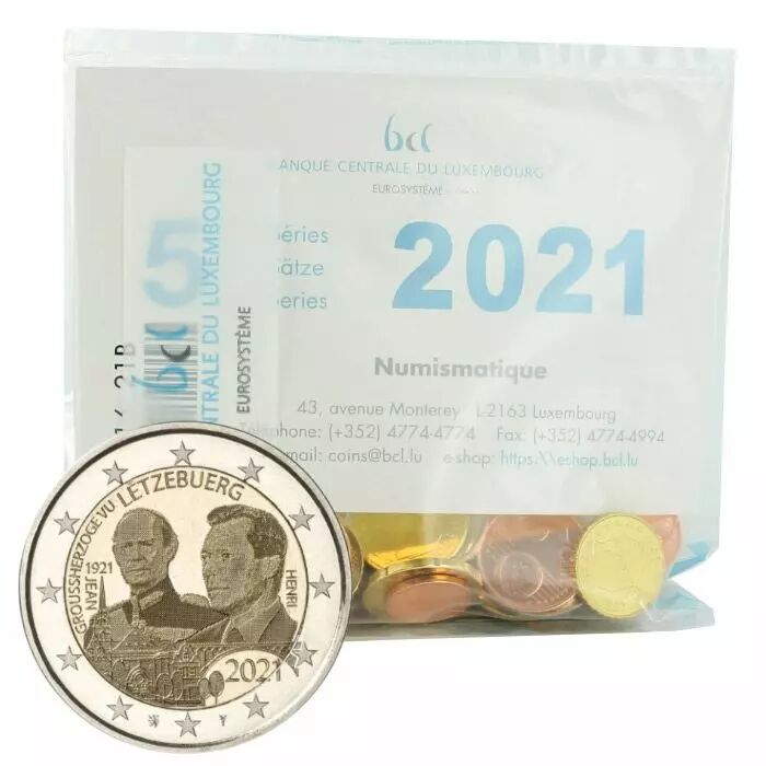 Accueil > Archivage > archivage-Archivage > Luxembourg Sachet 5 X Série Euro Luxembourg 2021 + 2 EUROS COMMÉMO LUXEMBOURG 2021 - 100 ans du Prince Jean Version hologramme"