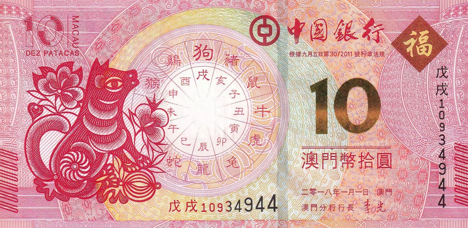 Billet Macao 10 Patacas - Année du Chien - Banco da China - 2018 - NEUF - P.NEW