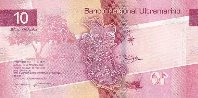 Home > World Banknotes > Asian Banknotes > Macau > Macao 10 Patacas - Centrale Bank - Map - BNU - 2020 - Serial AA