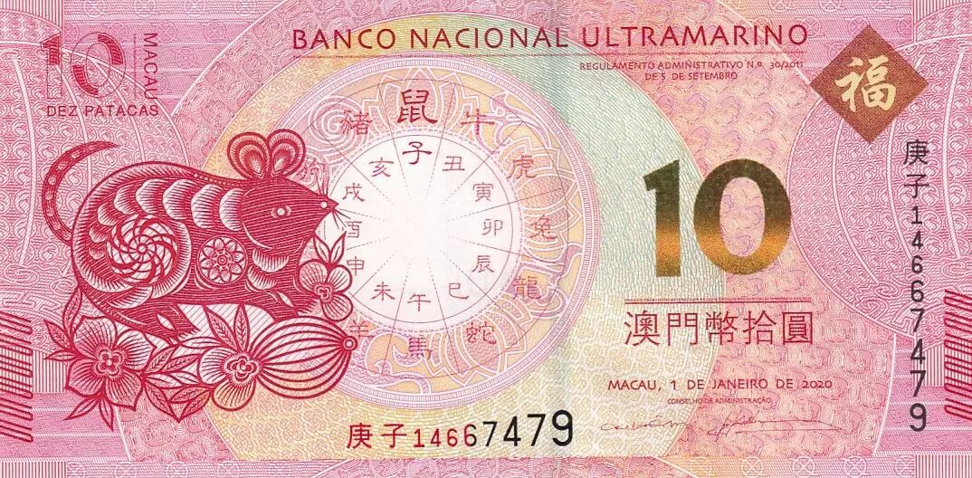 Home > World Banknotes > Asian Banknotes > Macau > Macao 10 Patacas Rat year's - BNU 2020