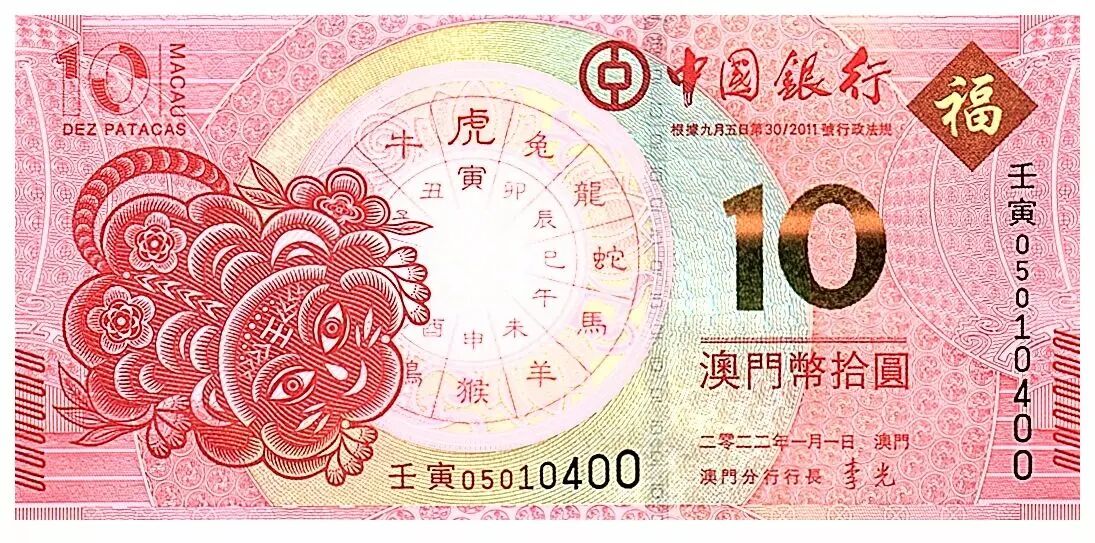 Home > > Macao 10 Patacas Tiger's year - Banco da China 2022 - UNC