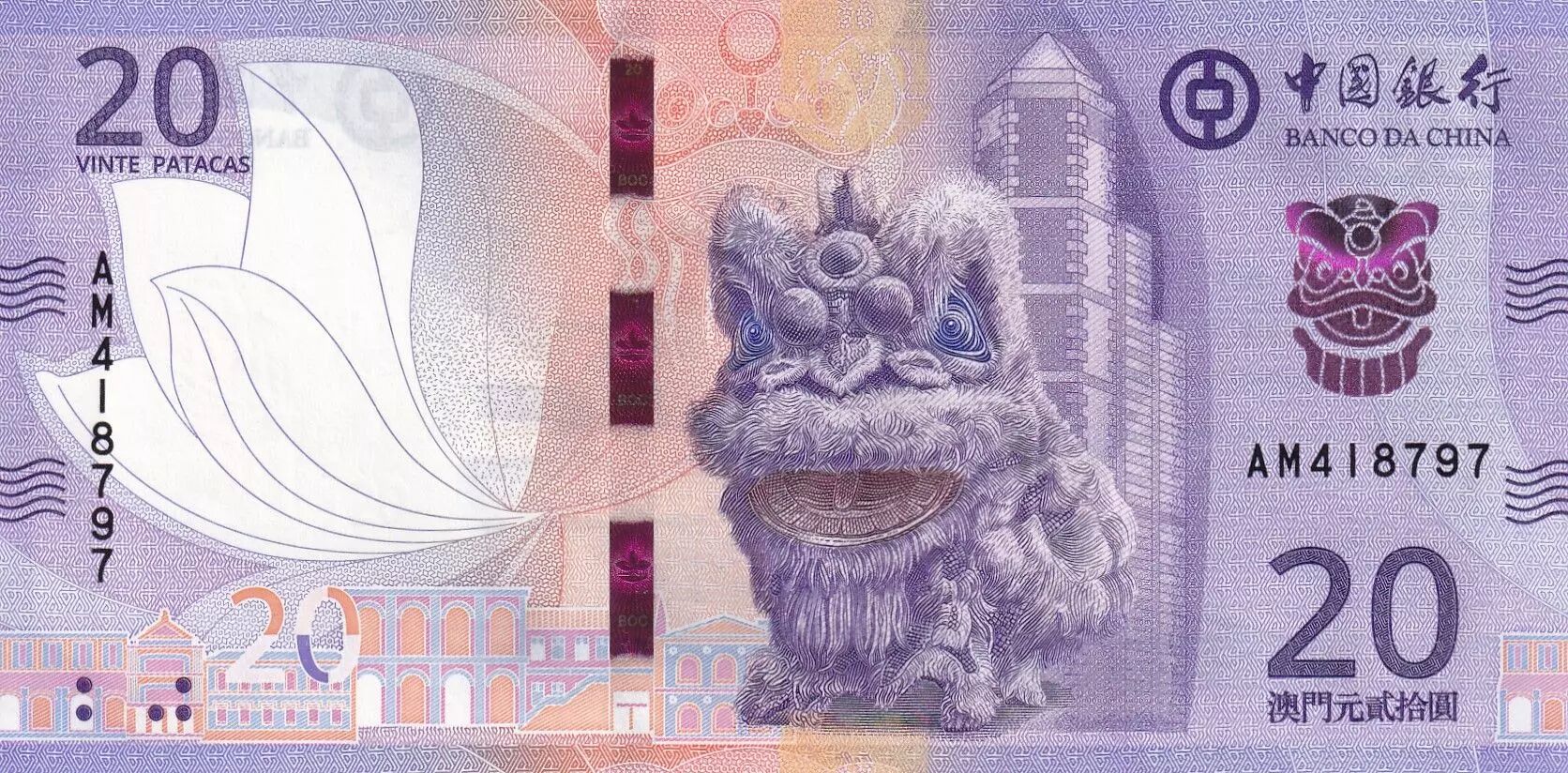 Home > World Banknotes > Asian Banknotes > Macau > Macao 20 Patacas - Lion - Bank of China - 2020 - Serial AM