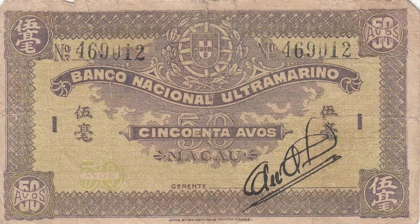 Billet Macao 50 Avos, Armoiries - 1944 - Lettre I