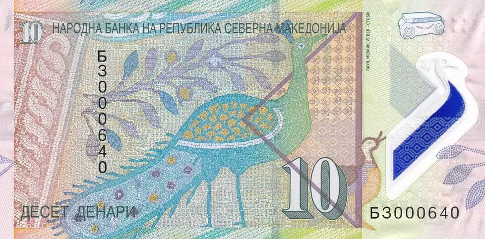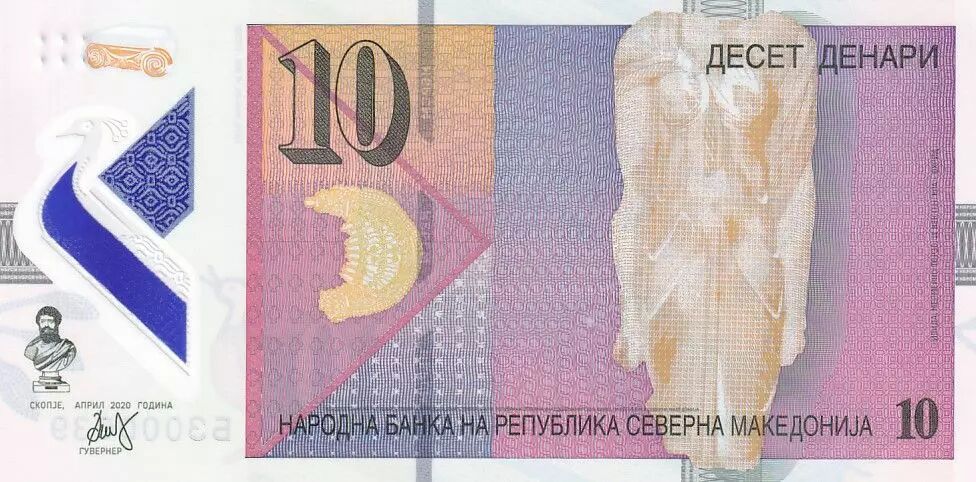 Ce billet de banque est émis par la Macédoine et possède une valeur nominale de 10 denari. Il a été mis en circulation en 2021.