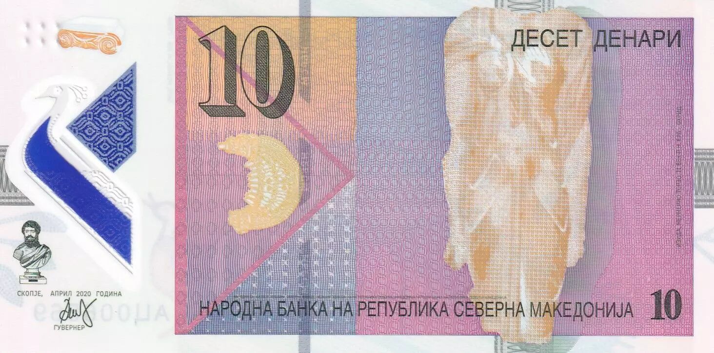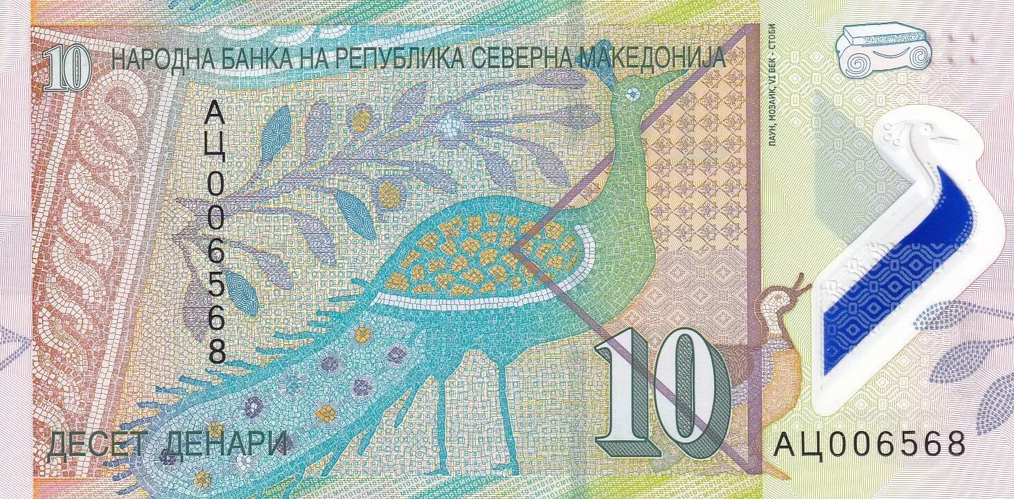 Banknote Macedonia 10 Denari Peacock - Goddess Isida 2021 - Polymer