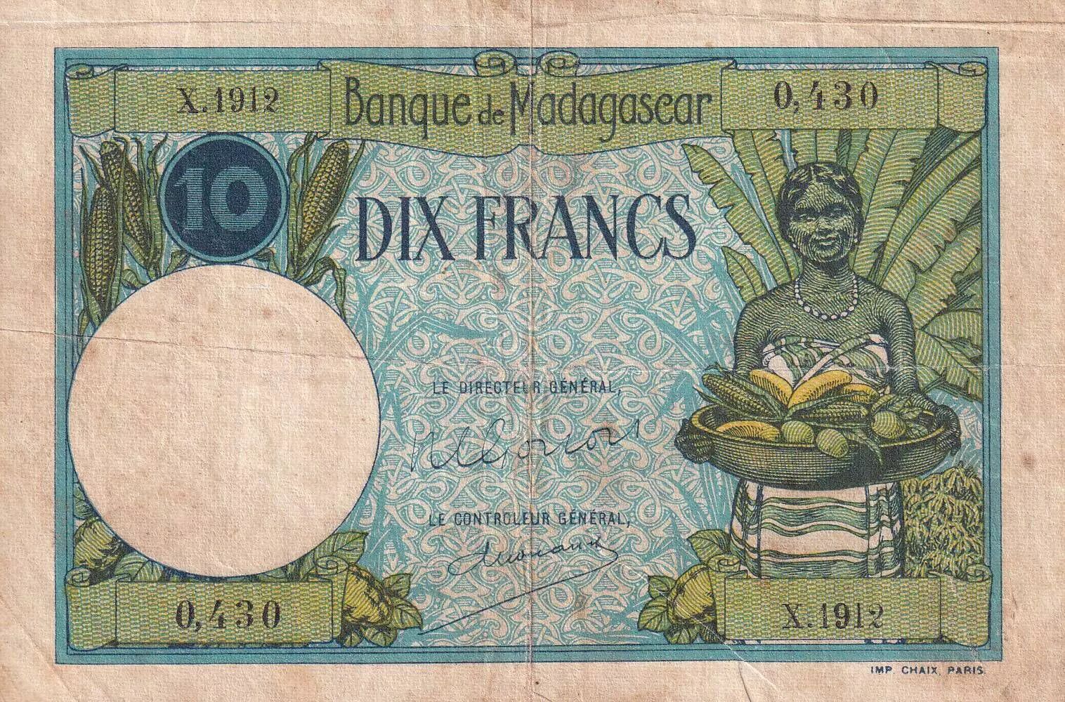 Accueil > Archivage > Madagascar 10 Francs - Type 1926 - ND(1948-57) - Série X.1912 - TB+ - P.36