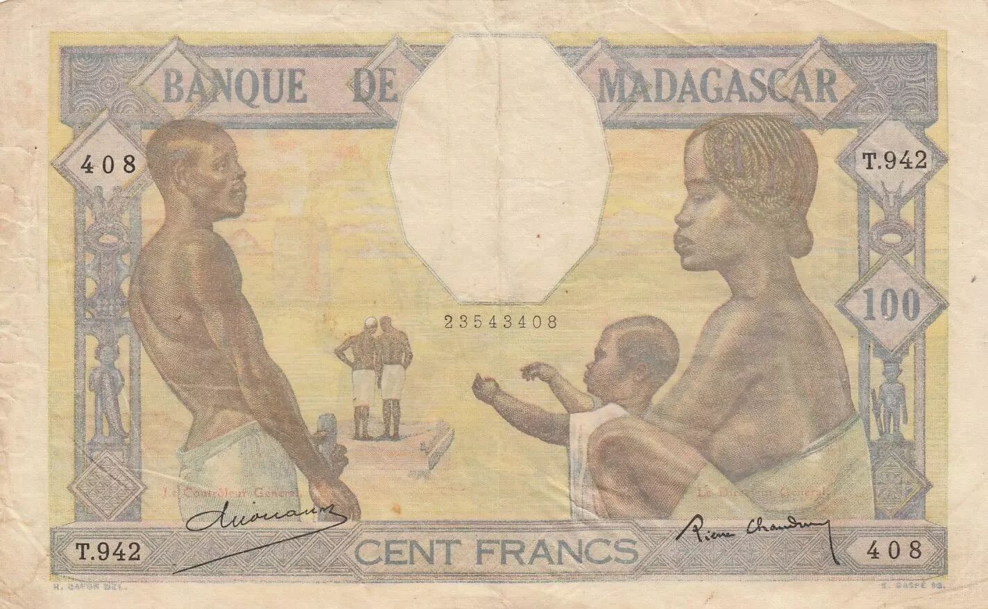 Billet Madagascar 100 francs - Famille, Agriculture et Industrie - Série T.942 - 1937