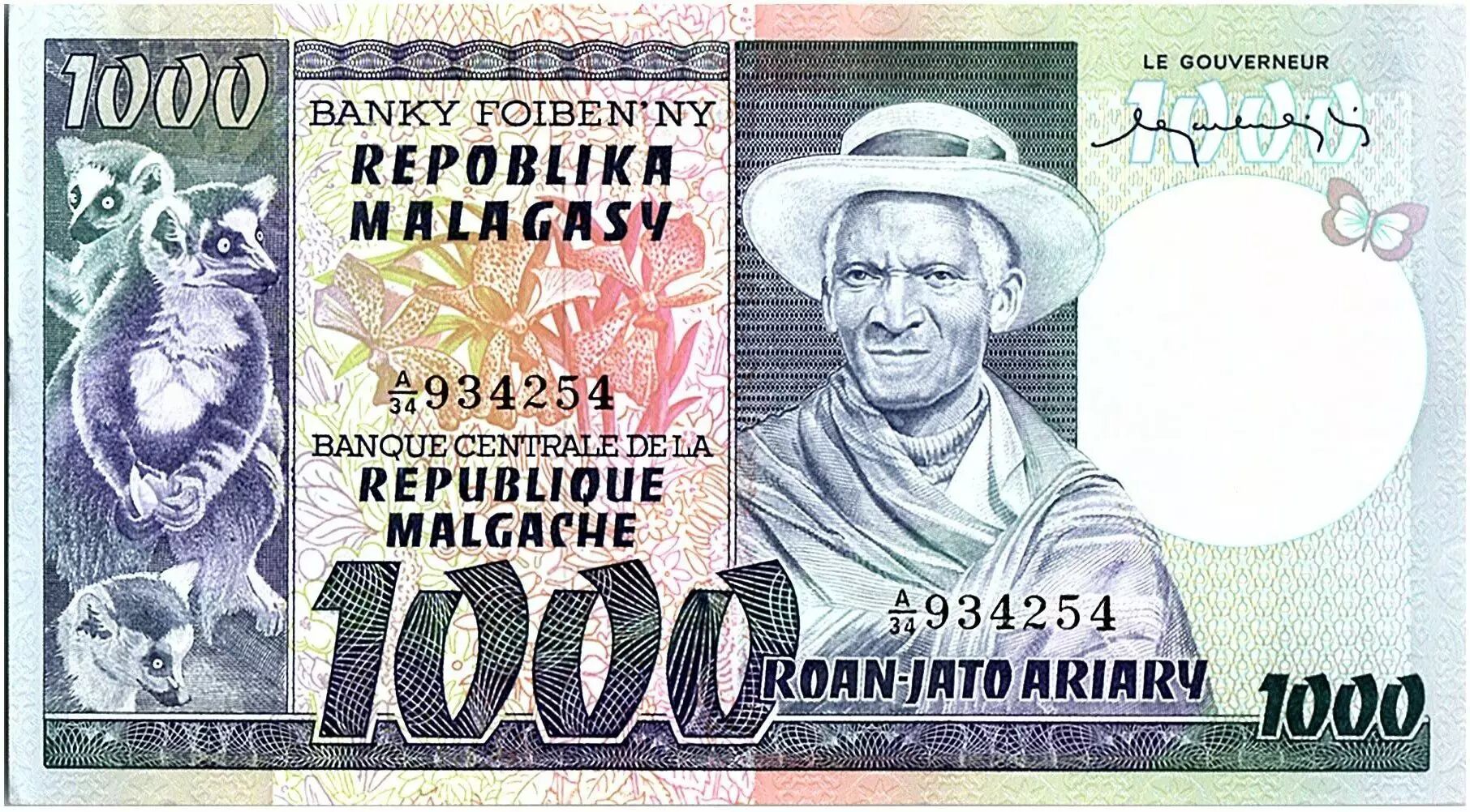 Banknote Madagascar 1000 Francs - Man et Lemurs - 1974