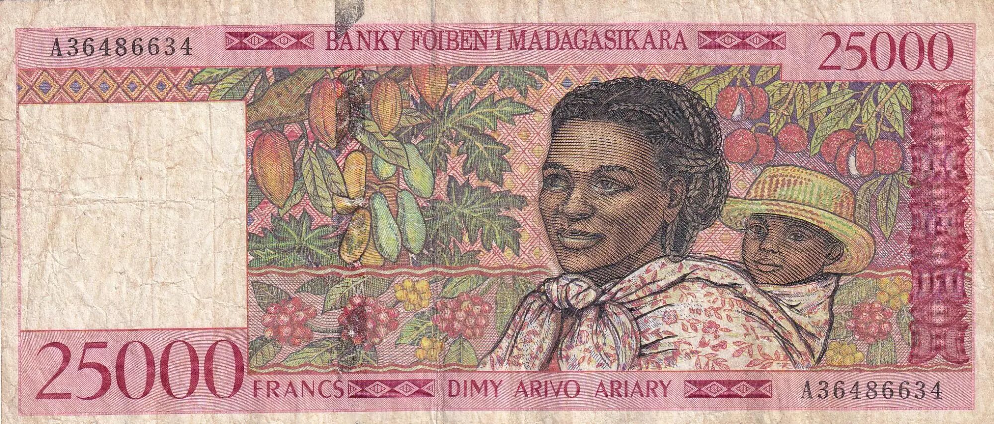 Billet Madagascar 25000 Francs Femme et enfant - 1998 - Série A
