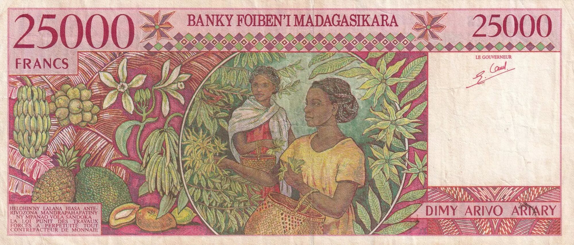Billet Madagascar 25000 Francs - Femme et enfant - Agriculture - ND (1998) - Série A - P.82