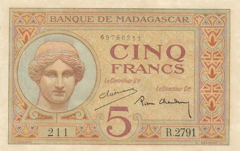 Accueil > > Madagascar 5 Francs - Déesse Junon - 1937 - Sign. Chaudun - Série R.2791