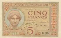 Billet Madagascar 5 Francs - Déesse Junon - 1937 - Sign. Chaudun - Série R.2791
