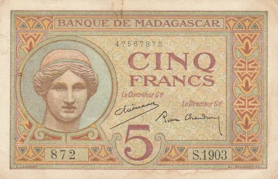 Accueil > Archivage > Madagascar 5 Francs - Déesse Junon - 1937 - Sign. Chaudun - Série S.1903