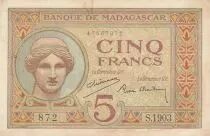Billet Madagascar 5 Francs - Déesse Junon - 1937 - Sign. Chaudun - Série S.1903