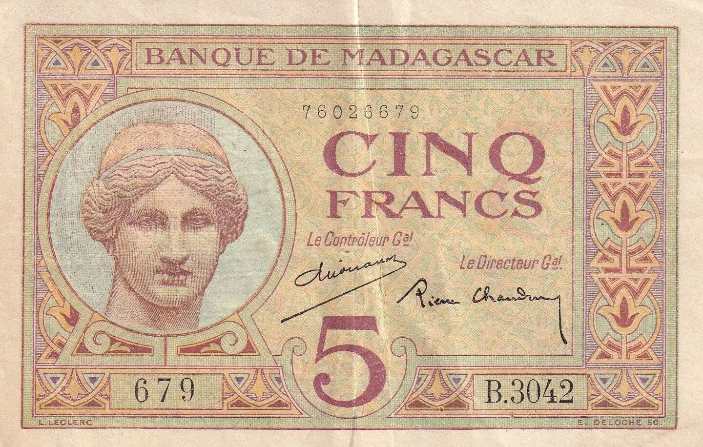 Accueil > Archivage > Madagascar 5 Francs - Déesse Junon - ND (1937) - Sign. Chaudun - Série B.3042 - P.35