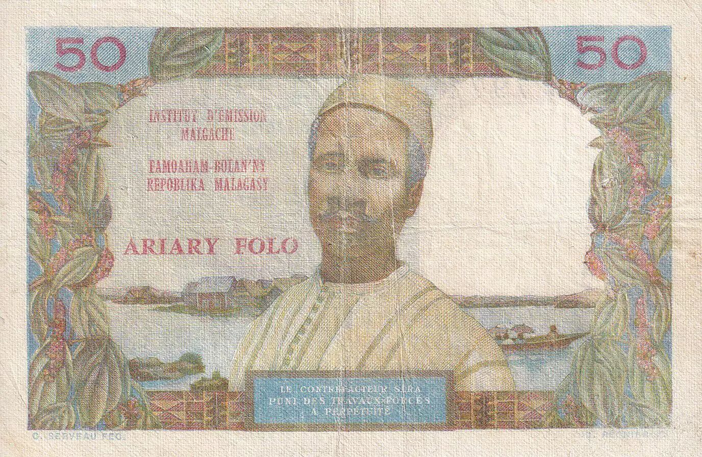 Banknote Madagascar 50 Francs - Woman and Hat - 1969 - Serial P.7 - VF - P.61