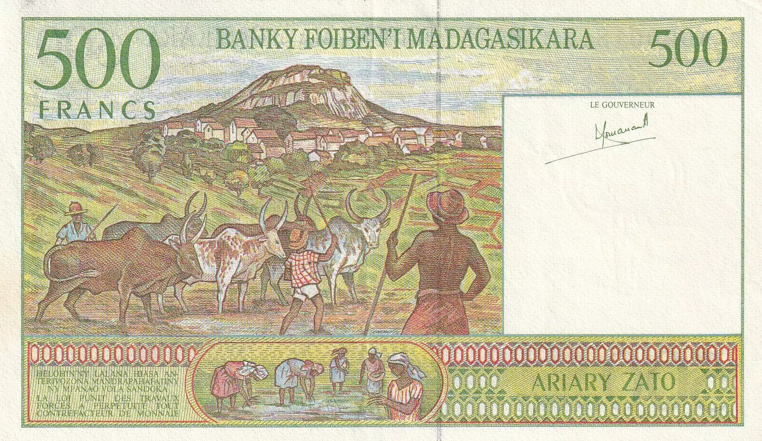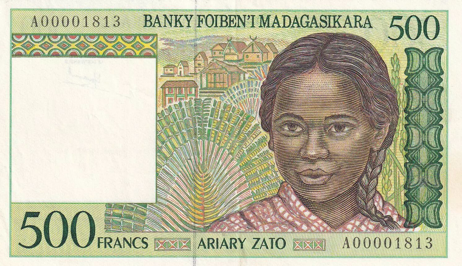 Banknote Madagascar 500 Francs - Young girl - Herdsmen - ND (1994) - Low serial A00001813 - P.75a