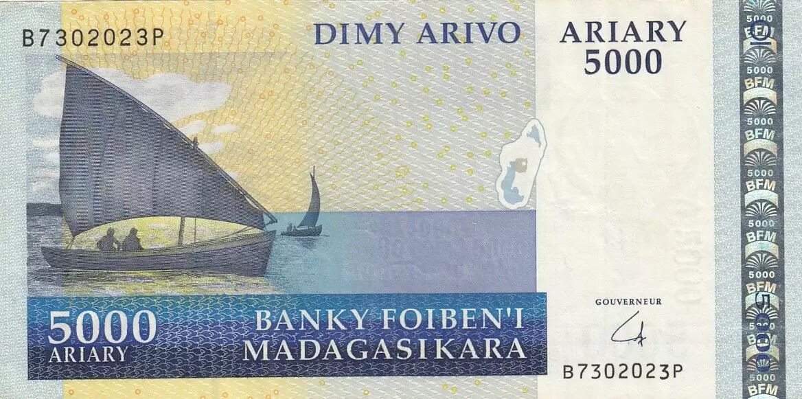 Accueil > Archivage > Madagascar 5000 Ariary - Barques de pêches - Plage - 2009 - P.91b