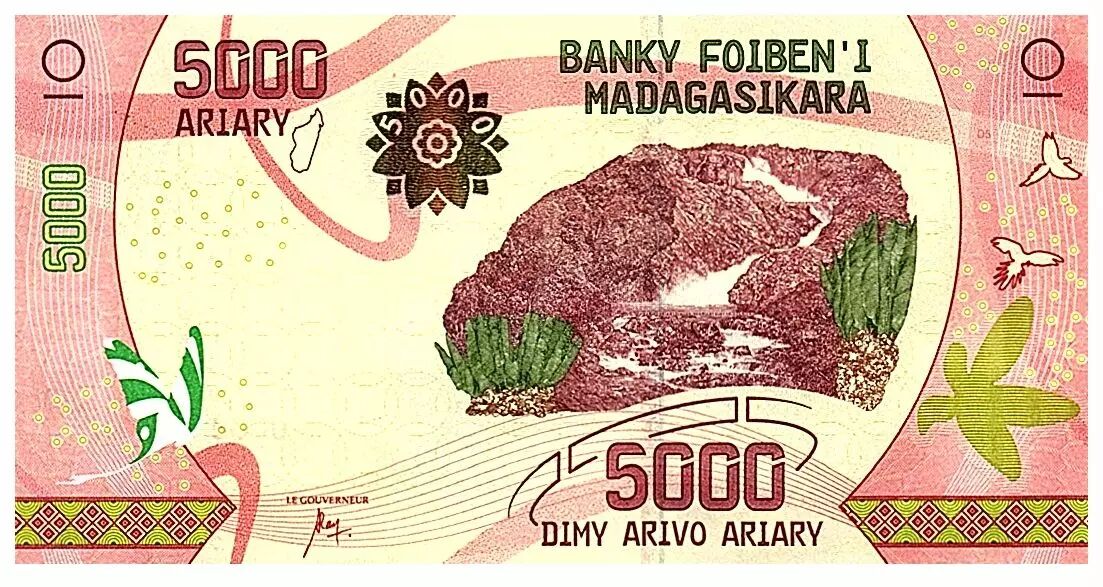 Accueil > Archivage > archivage-Billets du Monde > Madagascar 5000 Ariary - Cascade - Baleine - 2022 - Série C55
