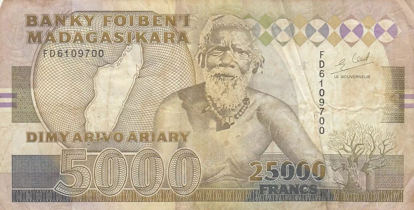 Accueil > Archivage > Madagascar 5000 ariary - Hommes, boeuf - Série FD - 1993