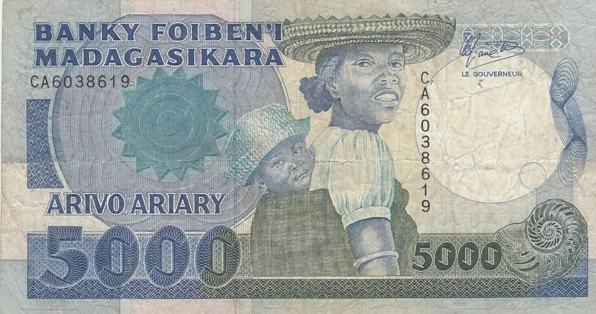 Billet Madagascar 5000 francs - Femme et enfant - Série CA60 - 1983