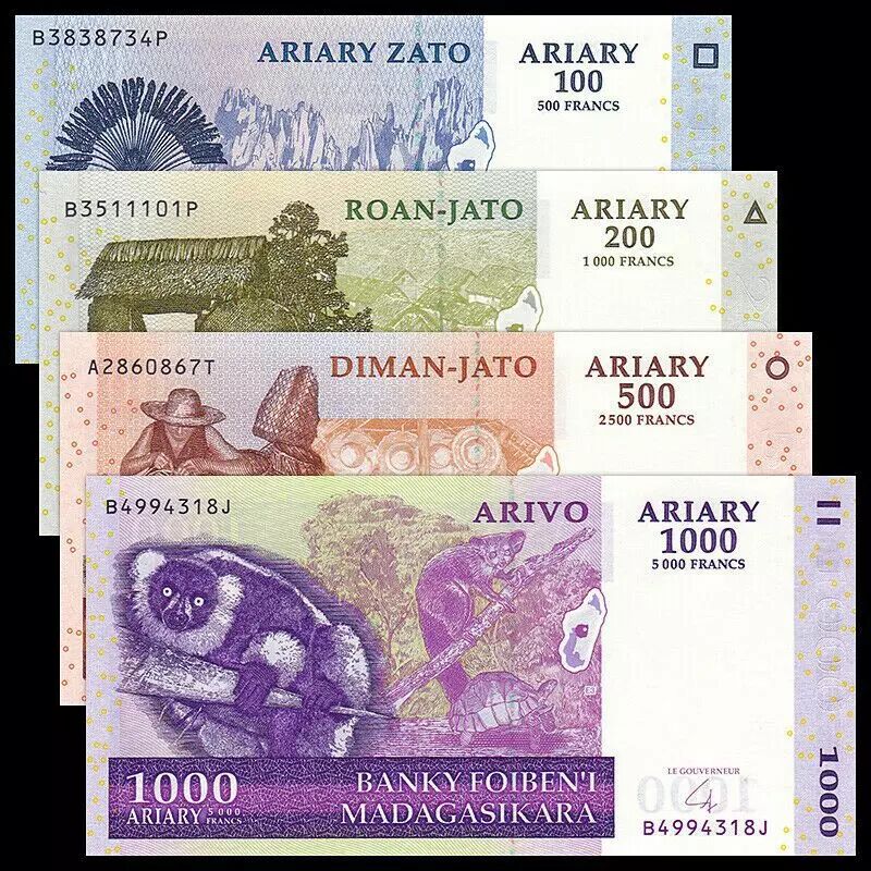 100 , 200, 500 and 1000 Ariary 2004-2014