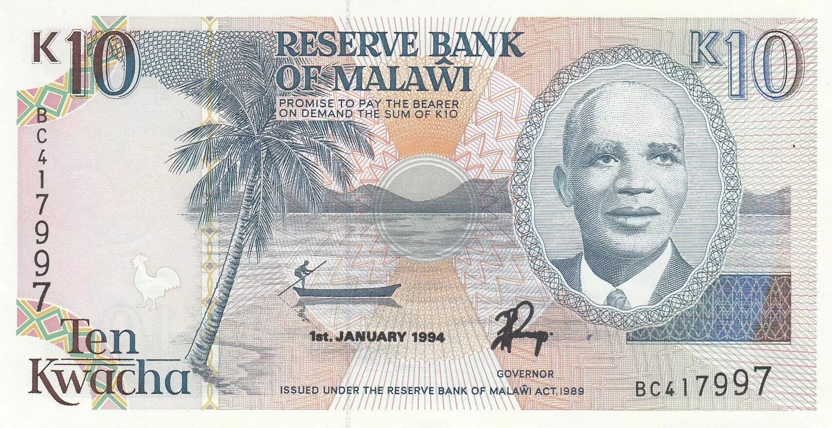Billet Malawi 10 Kwacha - Dr Hastings Kamuzu Banda - Lac - Bâtiment - 01-01-1994 - Série BC