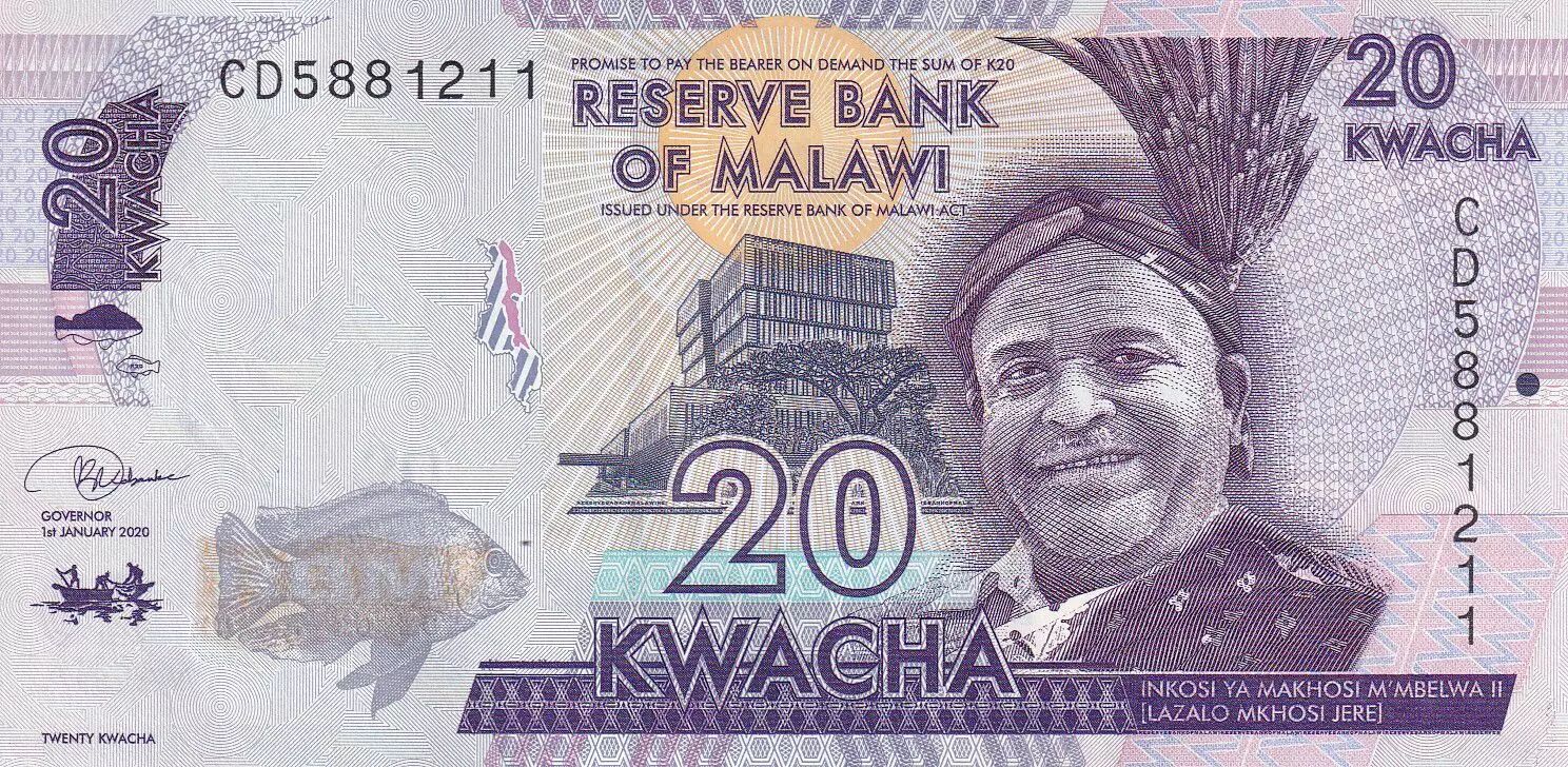 Banknote Malawi 20 Kwacha - Inkosi Ya Makhosi M Mbelwa II - 2020 - Serial CD - P.NEW