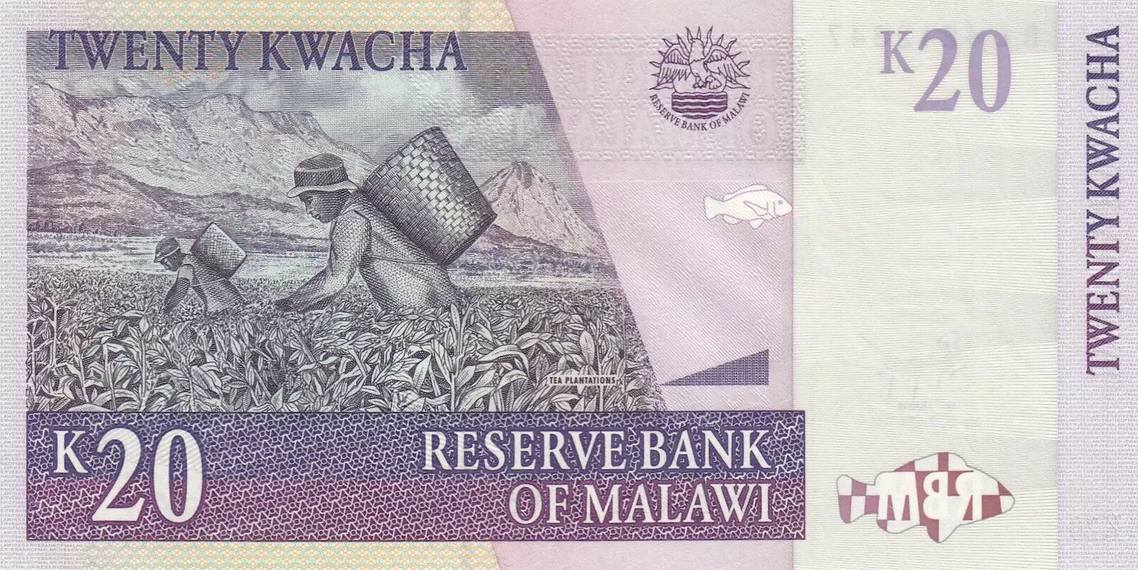 The dimensions of the banknote are standardized to facilitate its handling and storage by banks, merchants, and the public. The paper used for printing is specially designed to withstand daily wear and tear, ensuring a longer lifespan for the banknote in circulation. The combination of these visual and security elements makes the 20 Kwacha banknote a reliable financial instrument and a symbol of Malawi's national identity.