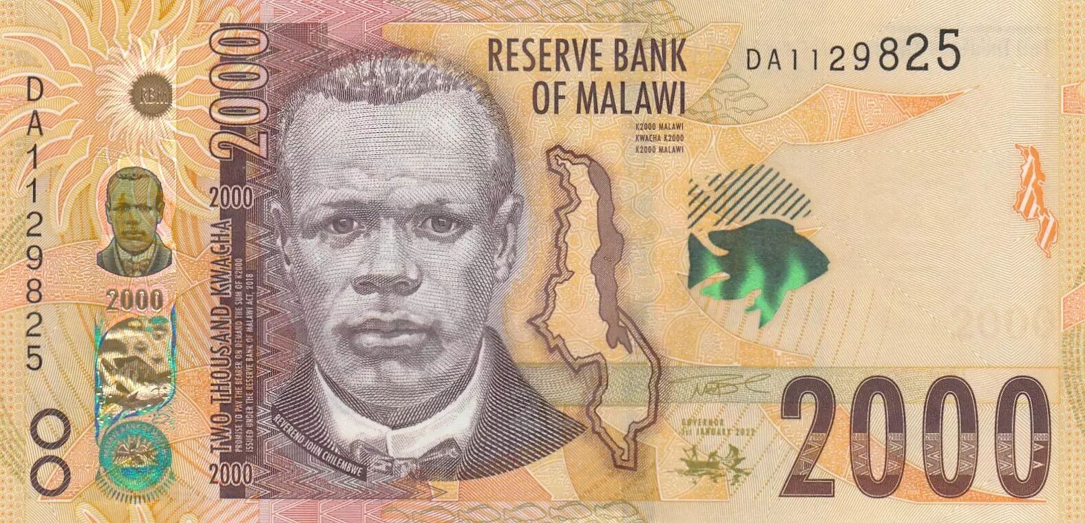Accueil > Billets du Monde > Billets d'Afrique > Malawi > Malawi 2000 Kwacha - John Chilembwe - Banque - 01-01-2022 - Série DA
