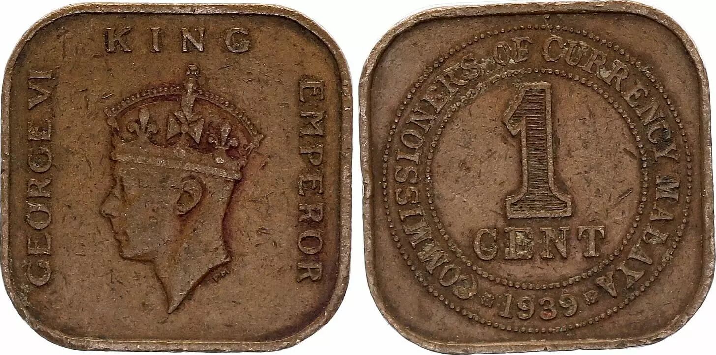 Coin Malaya 1 Cent - George VI - Mixted years 1939-1941