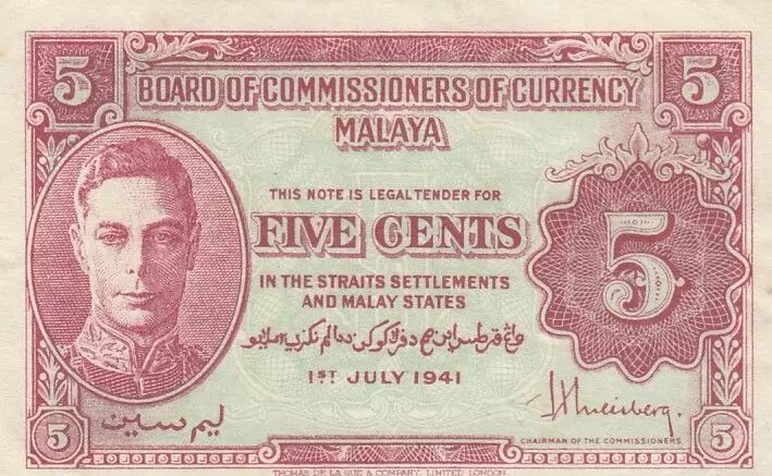 Billet Malaya 5 Cents - George VI - 1941 - TTB - P.7b