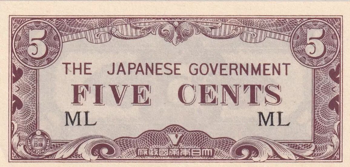 Accueil > Billets du Monde > Billets d'Asie > Malaya > Malaya 5 Cents ND 1942 - Occupation japonaise - Série ML