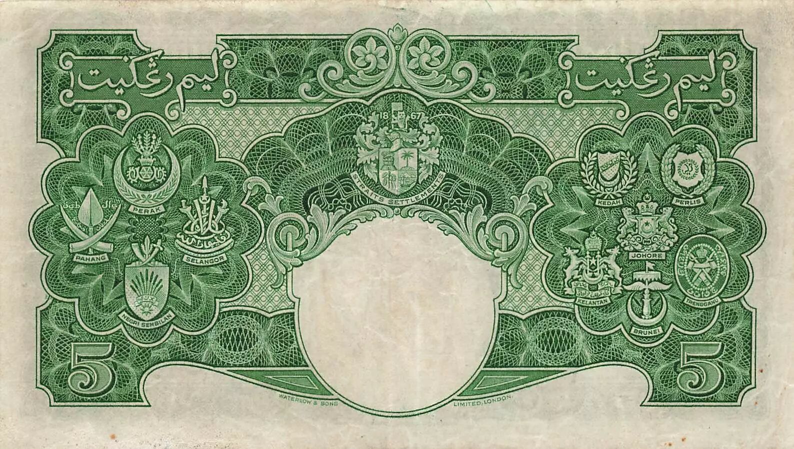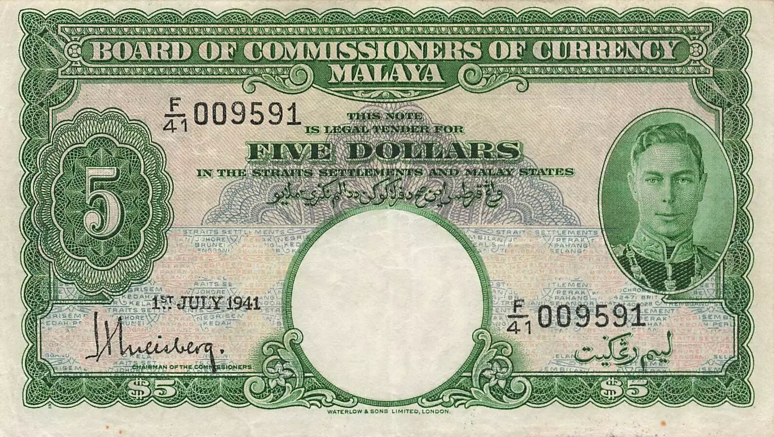 Accueil > Billets du Monde > Billets d'Asie > Malaya > Malaya 5 Dollars - George VI - 01-07-1941 - P.12