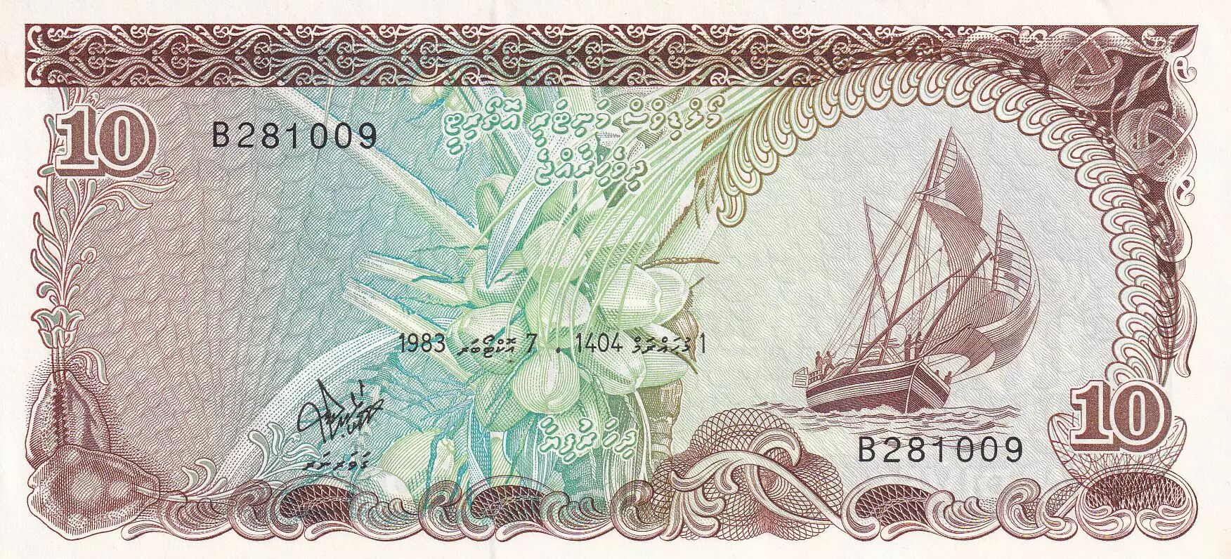 Accueil > Archivage > Maldives 10 Rufiyaa - Dhaw - Villageois au travail - 1983 - P.11a