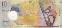 Billet Maldives 10 Rufiyaa, Villageois, cocotier - Polymer - 2015 (2016) - Neuf - P.26
