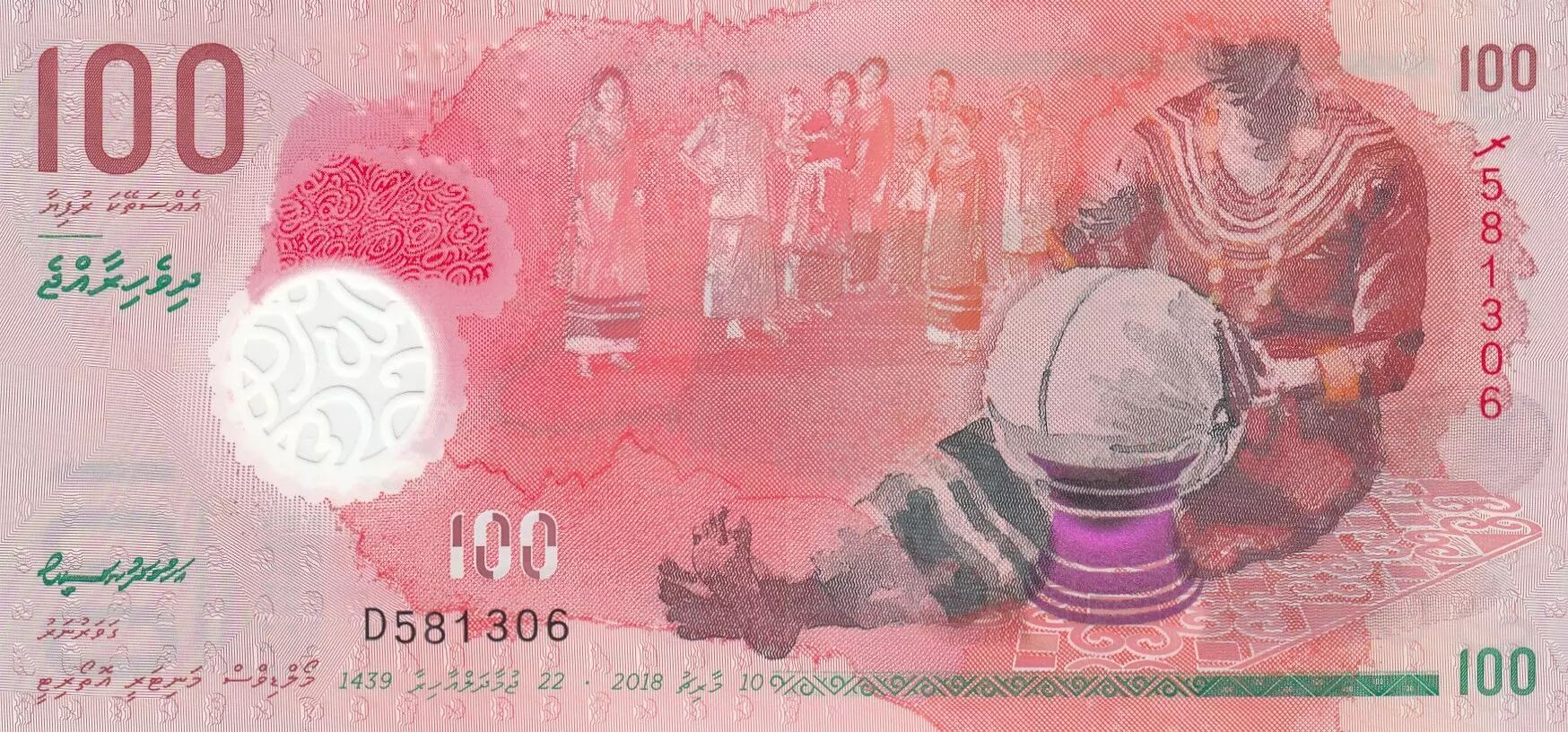 Billet Maldives 100 Rufiyaa, Femme tressant - Artisanat - Polymer 2018