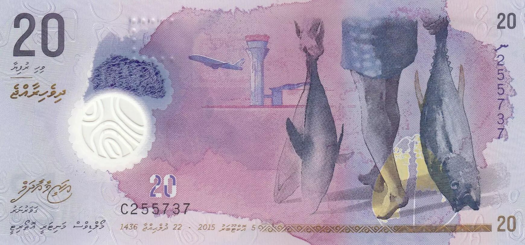 Accueil > Archivage > archivage-Billets du Monde > Maldives 20 Rufiyaa - Pêcheur - poissons - Dhaw - Polymer - 2015 - Série C